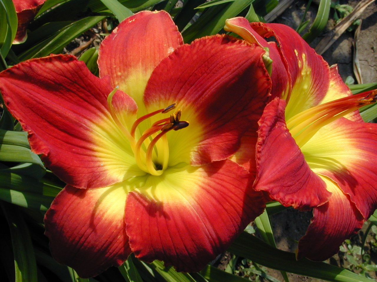 Loading... Please wait...Large bright red with darker red halo and chartreuse throat.