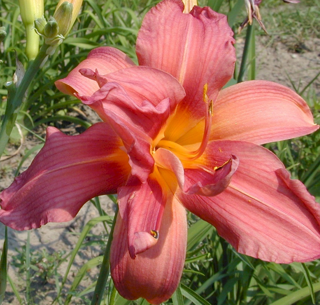 Loading... Please wait...Bright rose DOUBLE with green throat. Nice mid-September rebloom.