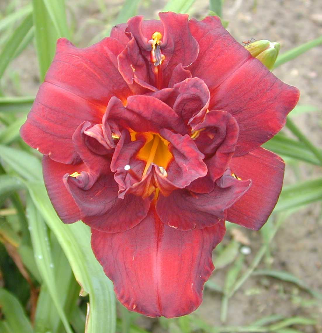 Loading... Please wait...Beautiful black-red DOUBLE with a yellow orange throat.