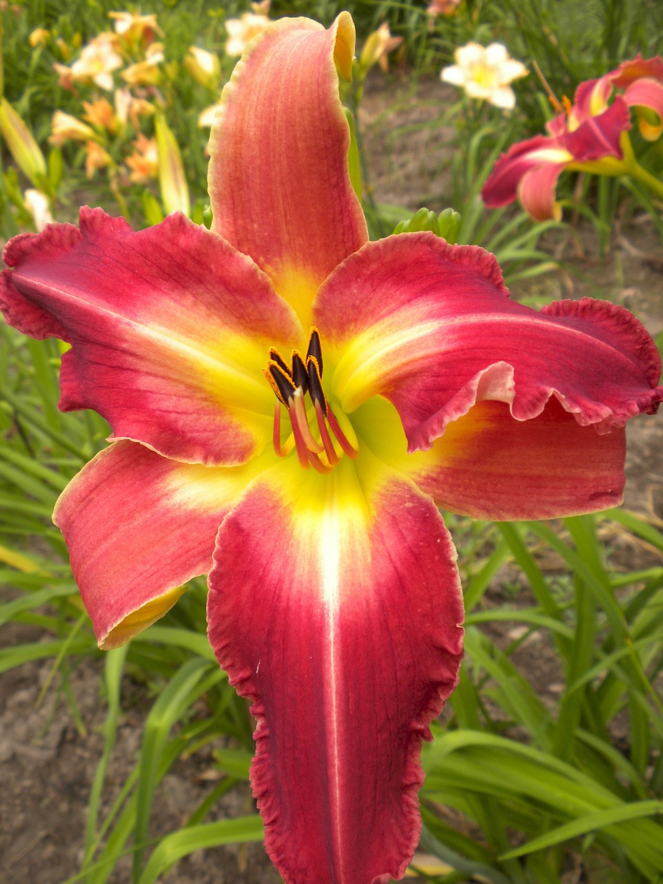 Loading... Please wait...Narrow red segments with a light red watermark above a pinched green throat.