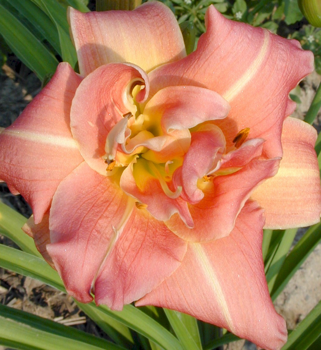Loading... Please wait...Lovely rose-colored DOUBLE with large white midribs and yellow-green throat.