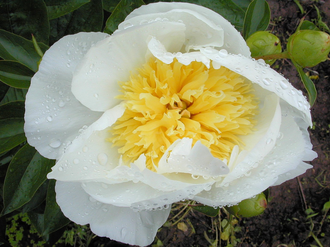 Smooth textured bloom with pure white guard petals and contrasting golden center. Beautiful Japanese blooms with luxurious foliage and strong stems!