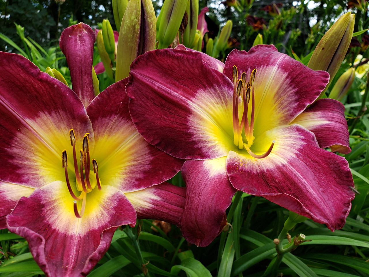 Loading... Please wait...Wine-black with chalky wine eyezone and yellow green throat. Award winner.
