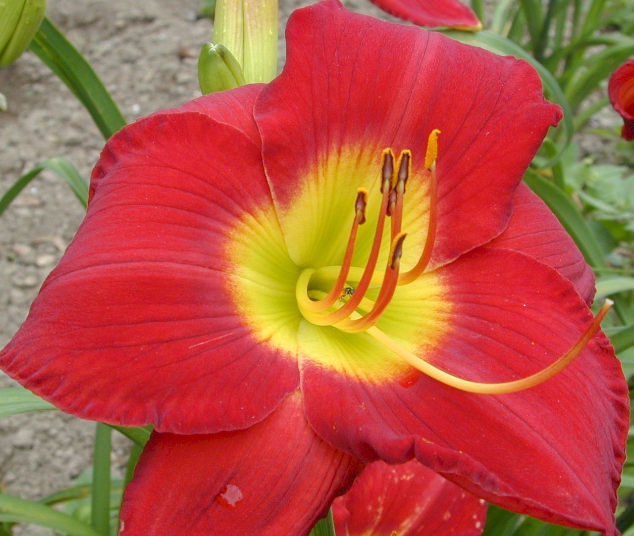 Loading... Please wait...Round, flat, scarlet red bloom with a chartreuse throat. Extra showy clump. Multiple award winner including Award of Merit 1991 and Honorable Mention 1987.