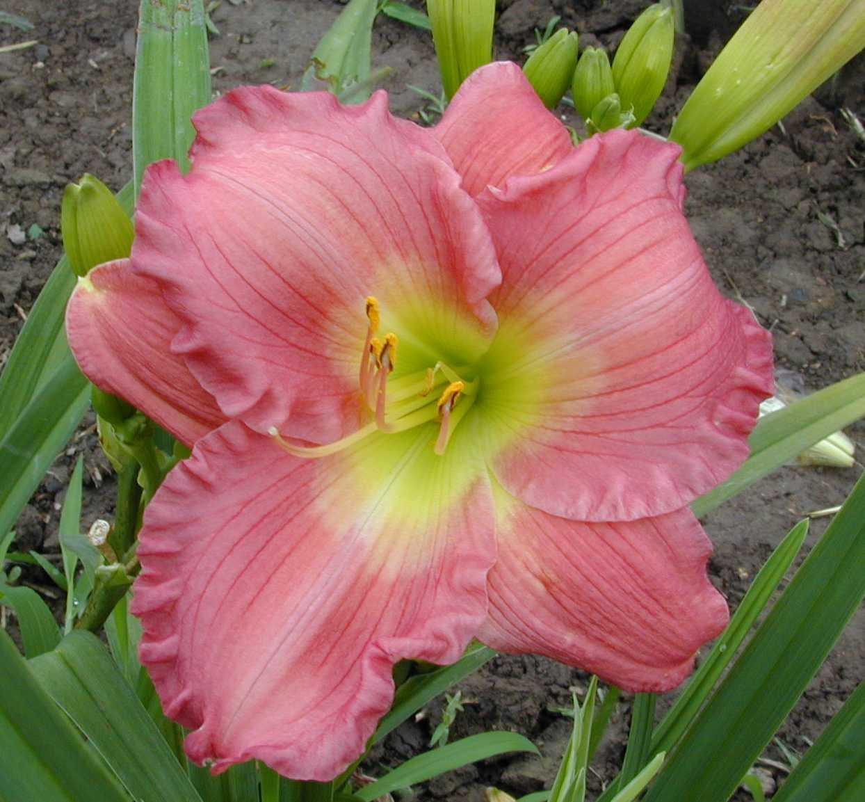 Loading... Please wait...Ruffled, deep rose-pink with a striking green throat. Award winner. Extra nice and a strong late rebloomer!